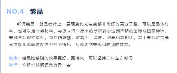 其实镀晶和镀膜是非常相似的,施工的流程和步骤也是一样的,只是它们的试剂不同而已,镀晶更硬更高级,能避免一些指甲、钥匙的轻微划伤所留下的小划痕。