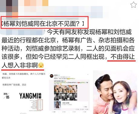 说起刘恺威和杨幂这对夫妻,真是一言难尽。这俩人和娱乐圈中其他的明星夫妻不同,名义上是一对合法夫妻,但是这几年来,俩人却貌合神离,好似离婚。其实,说他们貌合神离,并不是空穴来风,他们俩相恋时,以及刚结婚那段时间里和其他明星情侣夫妻一样,很甜蜜,不仅互相探班对方,还一言不合就亲吻,然而近几年这俩人不仅没了当初的甜蜜,几乎是很少合体。